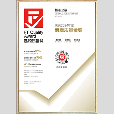 奖 项:【2024年沸腾质量金奖】 恒洁HLG305系列淋浴房