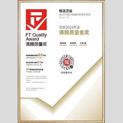 奖 项:【2024年沸腾质量金奖】 恒洁T7系列琴键即停淋浴花洒HMF176-333C