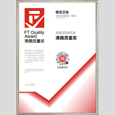奖 项:【2024年沸腾质量金奖】 恒洁N2S电控一体机 HQ802P