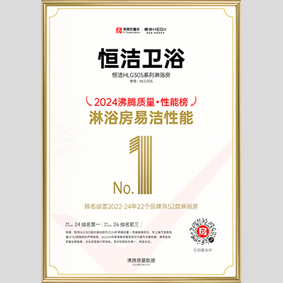 奖 项:【淋浴房易洁性能第一】 恒洁HLG305系列淋浴房