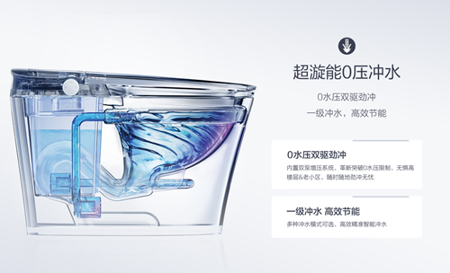 超漩能0压冲水技术,0水压双驱劲冲,一级冲水,高效节能 |