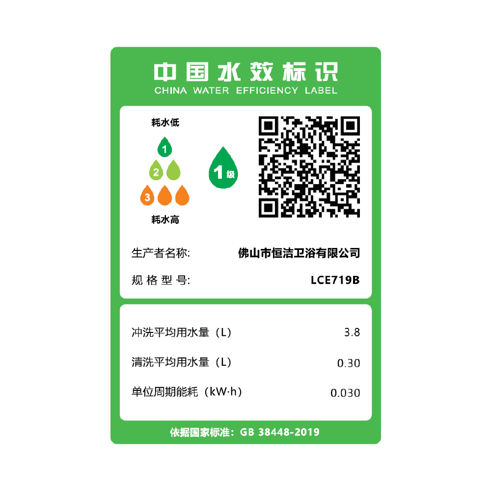 - 国家一级水效:强效省水,高效节能